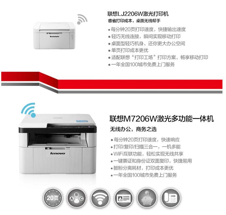 聯(lián)想M7206WM7206黑白激光無線WiFi一體機打印機辦公家用A4黑白打字復(fù)印件