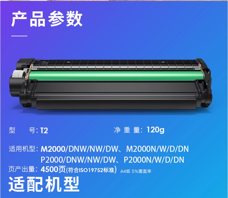 得力T2原裝硒鼓墨盒碳粉墨粉M2000DW M2000DNW M2000N DN NW P2000D P2000W 2000激光復(fù)印機(jī)打印機(jī)粉盒通用