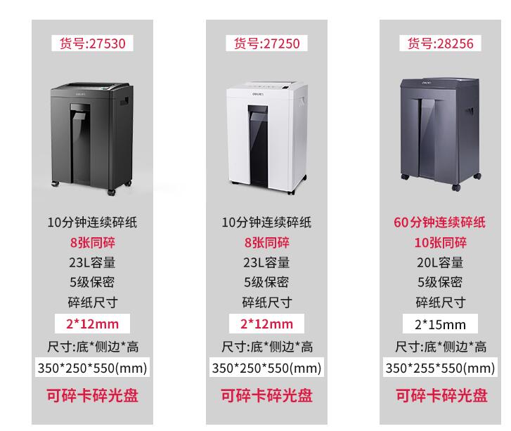 得力27530辦公室碎紙機(jī)5級(jí)保密碎紙商用文件粉碎機(jī)大功率電動(dòng)辦公室用大型碎紙機(jī)23L家用小型粉碎紙機(jī)